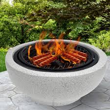 Elevate your outdoor evenings with the Teamson Home Round Fire Pit in light gray. This versatile pit is perfect for cozy fires or outdoor cooking with included grill and tools. Designed for both style and safety, it’s a centerpiece for any patio, garden, or backyard event.